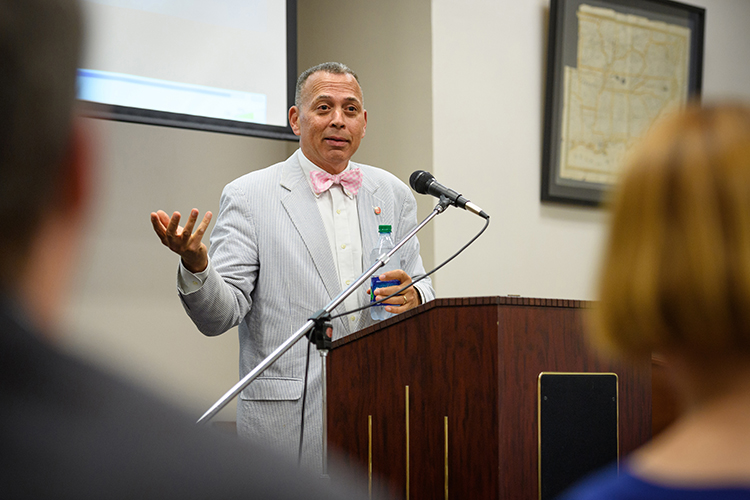 The Mississippi Humanities Council recently presented Ralph Eubanks, visiting professor of English and Southern studies at the University of Mississippi and writer-in-residence at the Center for the Study of Southern Culture, with a 2022 Public Humanities Award. Photo by Robert Jordan/Ole Miss Digital Imaging Services