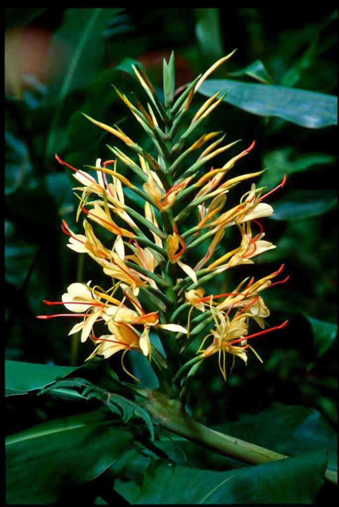 There are forty-seven genres and more than a thousand distinct species of ornamental ginger plants. There is great variation among species with presentations that look like pinecones, pineapples, mutant orchids, or alien insects. A visit to Hawaii will provide you with a large variety but most are not native.