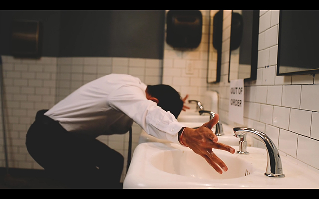 The Faucet is a comical, Absurdist short about a man who just wants to wash his hands, but reality seems to be conspiring against him accomplishing even this simple task. Co-directors Danny Klimetz and Samip Raval have created a compact, enjoyable romp which anyone could relate to who has ever had a day where absolutely not one single thing goes their way. The film eschews dialogue, playing almost like a Charlie Chaplin sketch,
