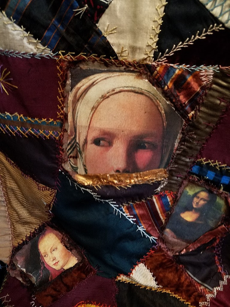 Anne Strand will exhibit new mixed media collages/paintings on canvas and mixed media collages/paintings on vintage patchwork quilts this March at Southside Gallery. Strand describes the exhibition, titled Shattered Silk, as a tribute to “icons of the feminine visage,” which “symbolize the artistry of the feminine eye as set forth in quilt form over the ages.”