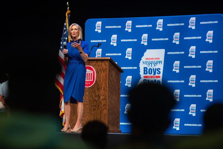 Mississippi Attorney General Lynn Finch addresses delegates to American Legion Boys State on Thursday (June 2) at the University of Mississippi. The annual weeklong event provides leadership development for rising high school seniors. Photo by Kevin Bain/Ole Miss Digital Imaging Services