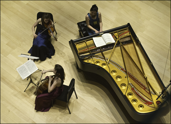 Believing that education on all levels is essential to the future of classical music, the Claremont Trio is extensively involved in teaching the next generation of musicians and music lovers. This year they continue their visiting residency at Longwood University, Hampden Sydney College, and Lynchburg College as the Central Virginia Ensemble-in-Residence. Sought after for their effectiveness in the classroom as well as on the concert stage, the Trio frequently conducts residencies, master classes, and educational outreach activities. They have conducted master classes at the Eastman School of Music, Columbia University, Duke University, Peabody Conservatory’s Preparatory Division, Boston Conservatory, Purchase College at SUNY, Middlebury College, the University of Wisconsin at Oshkosh, Longy School of Music, the University of Washington, Kansas State University, and Gettysburg College’s Sunderman Conservatory.