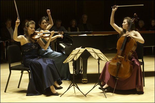 During the 2012-13 season the Claremont Trio returns to prestigious venues including Chamber Music Cincinatti, the Buffalo Chamber Music Society, Duke Performances, the Chamber Music Society of Bethlehem, and New York’s Lincoln Center, where they will collaborate again with Rob Kapilow in his “What Makes It Great” series. They conclude their series in honor of the opening of Calderwood Hall at Boston’s Isabella Stewart Gardner Museum, pairing three world premiere commissions by Sean Shepherd, Helen Grime and Gabriela Lena Frank with a survey of trios by Mozart and Mendelssohn. They will also perform these new commissioned works at Brooklyn’s exciting club venue, Roulette, and will perform at the National Academy of Sciences in Washington, DC. Summer festival appearances this year include the Austin Chamber Music Festival, Cape Cod Chamber Music Festival, Monadnock Music, the Honest Brook Chamber Music Festival and a return to the Great Lakes Chamber Music Festival in Detroit as part of its 20th anniversary season.