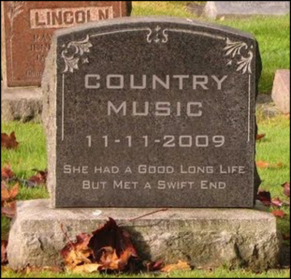 Which brings me to my point. Is real country music dying out? Has it already died, with just a few old boys like Merle and Willie and Dwight and Billy Joe hanging on? (Dolly, bless her heart, went crossover pop years ago.) If country music is dying, what does that say about our country and our culture?