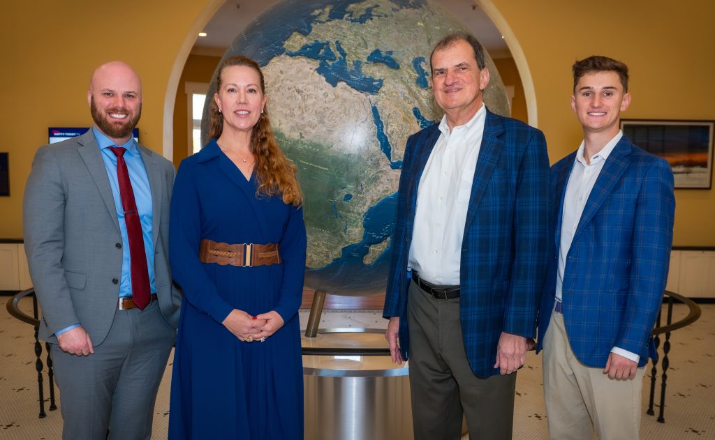 University of Mississippi alumnus Dean Douglas (second from right) talks with (from left) Ethan Davis, assistant director of The Center for Practical Ethics; Deborah Mower, the center's director; and Douglas' nephew Nick Douglas, a freshman entrepreneurship major from Collierville, Tennessee. Dean Douglas has established a fund to support the center's work. Photo by Bill Dabney/UM Foundation