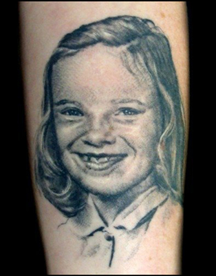 And the portrait on my left forearm reminds me so daily. The little girl’s face inked on my skin is my Momma’s third grade school photo. It’s her favorite picture of herself as a little girl; her mom had always told her not to show her teeth when she smiled for the camera. But on that particular portrait day, the shutter clicked at just the right moment to catch the sincere smile I’ve grown up smiling back at.
