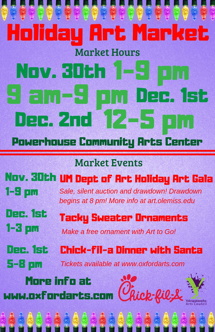 Dec. 1st – 1-3 pm – Tacky Sweater Ornaments party. Make a free ornament with Art to Go!