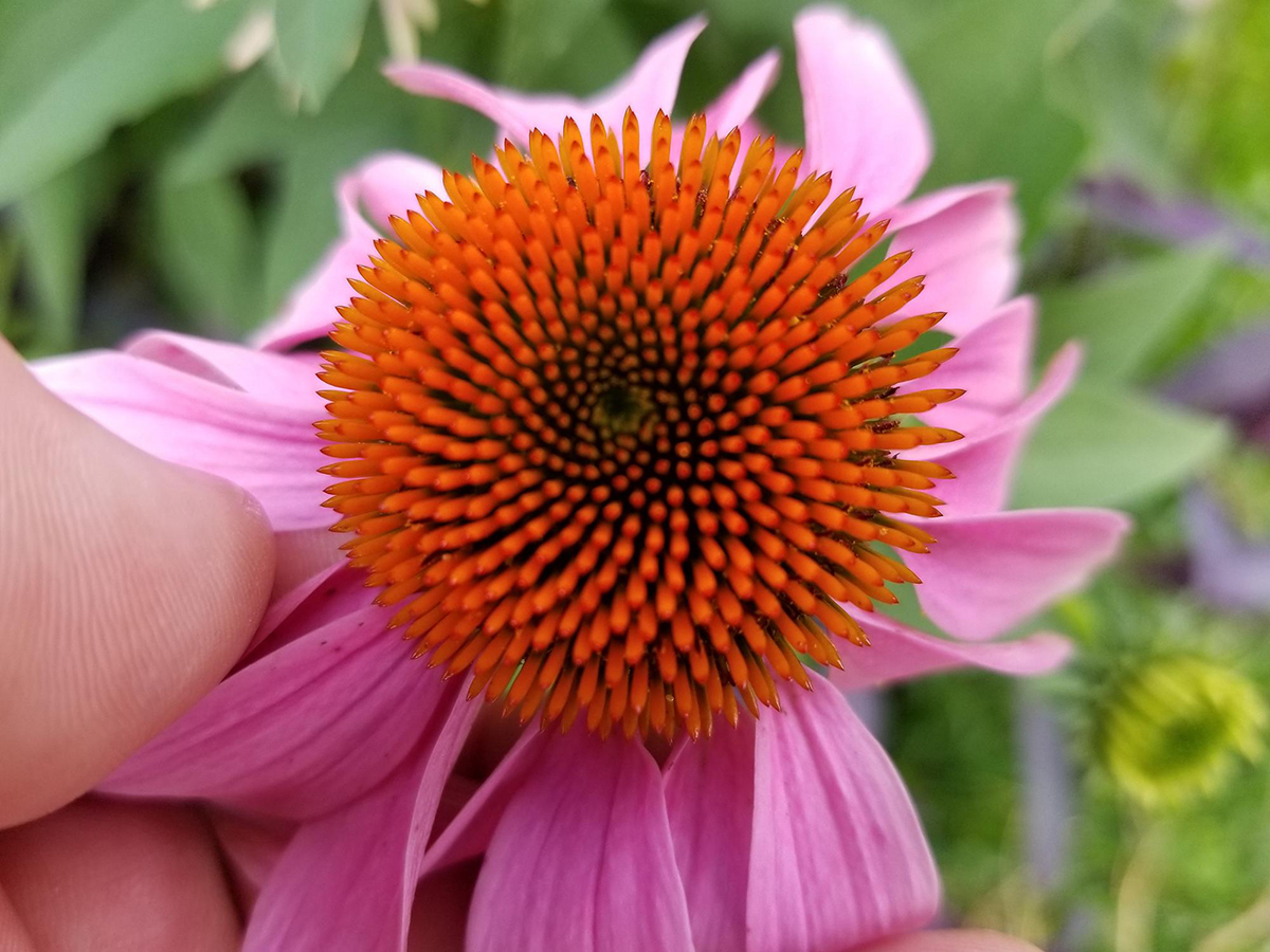 There are nine different species of Echinacea native to North America. One popular version is Echinacea purpurea, the Eastern purple coneflower. This beauty grows up to 3 feet tall and wide and has large purple flowers with dark centers. The blossoms may be as large as 2-3 inches wide!
