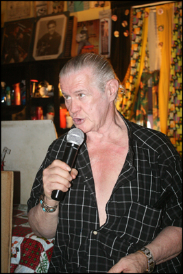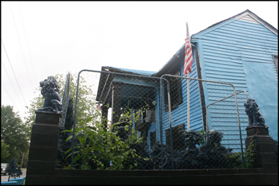 Paul McLeod and his hot, dusty, electric blue tribute to Elvis feel like they came straight out of the Southern Gothic school of writing. When he opened the door to greet us his steel gray hair was slicked back and he was wearing wrinkled slacks, black Velcro orthopedic shoes, and a short-sleeved button-up shirt that was unbuttoned almost to his belly button. He speaks quickly and with a nasally drawl that makes it almost impossible to understand much of what he says, and then there are the times when you understand him and wish you hadn’t. I asked him right before the tour began who started the rumor that he’d died. He said, “I don’t know, but it’s the third time it’s happened. Last time I didn’t get to the front door fast enough and the police cut it down with a chainsaw.”