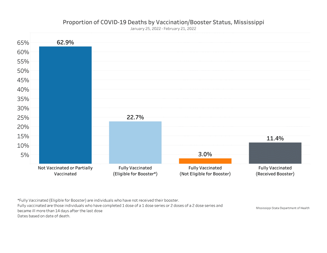 New cases and hospitalizations for COVID-19 are rapidly decreasing in the state, but deaths among older Mississippians without COVID-19 booster doses remain unfortunately high.