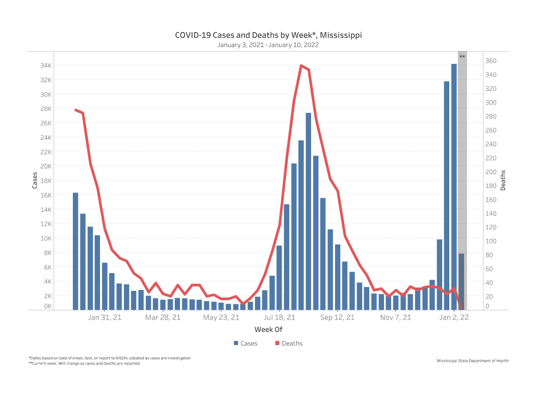 | The Omicron variant now makes up virtually all cases of COVID-19 in Mississippi. Hospitalizations are rapidly increasing, and deaths have begin to rise. Vaccination and boosters remain effective protection. |