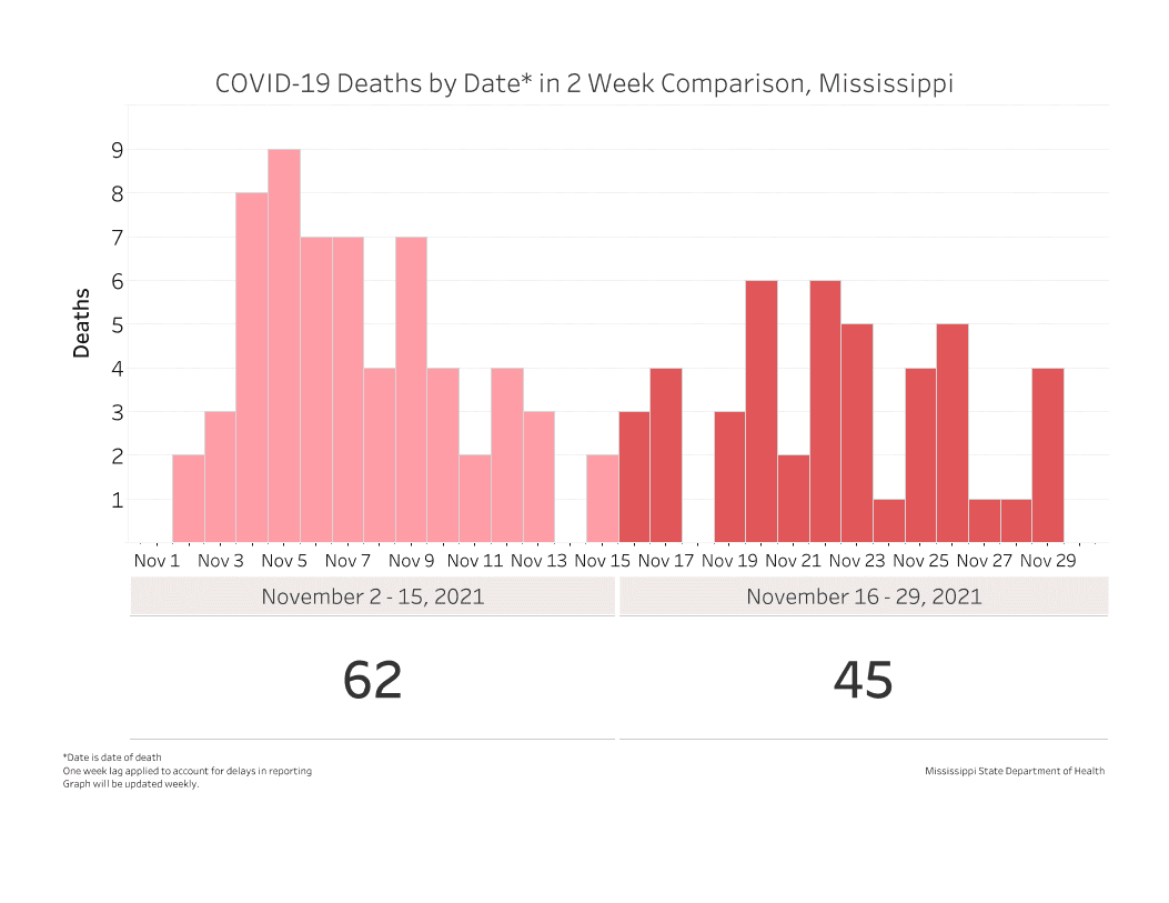 COVID-19 related deaths reported to MSDH or determined from death certificate reports between August 31 and September 6, as of 3 p.m. yesterday.