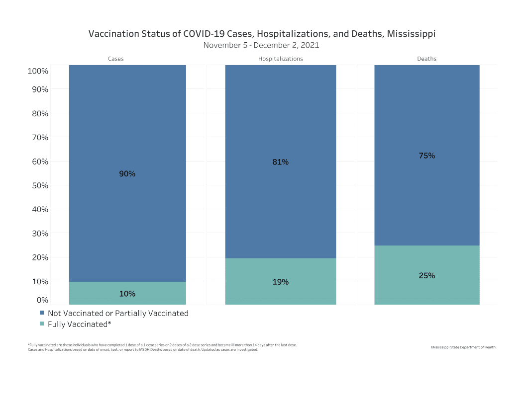 Most COVID-19 cases, hospitalizations and deaths are now among unvaccinated Mississippians.