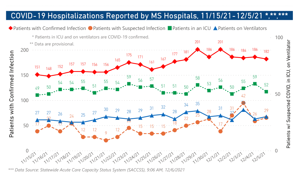Mississippi’s hospital burden remains exceptionally high, as a shortage of adult and children’s ICU beds continues.