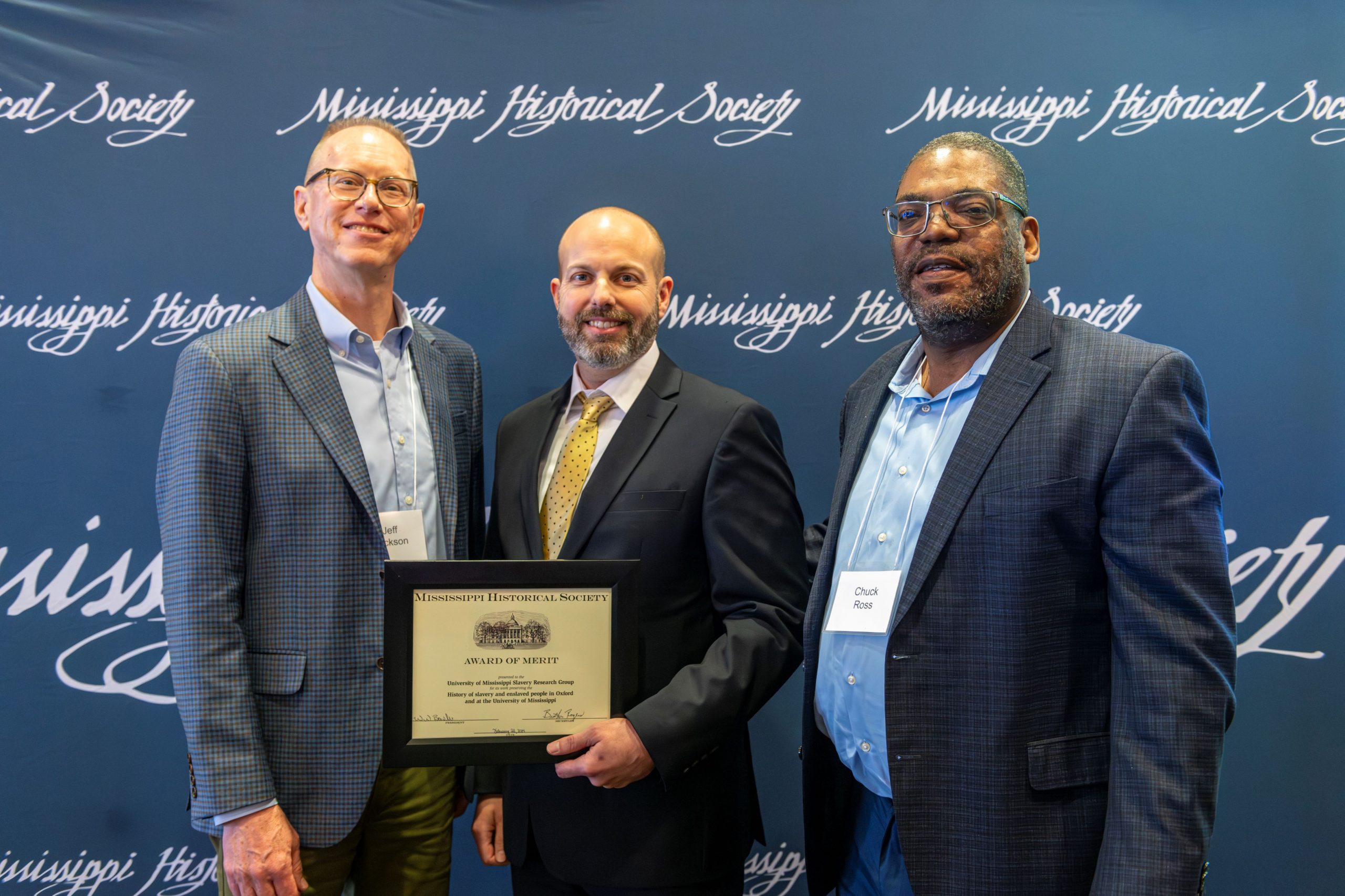 The Mississippi Historical Society recognized the UM Slavery Research Group among 15 others that are working to preserve Mississippi history with “Awards of Merit” at its annual meeting Friday, February 23, 2024 at The Inn at Ole Miss.