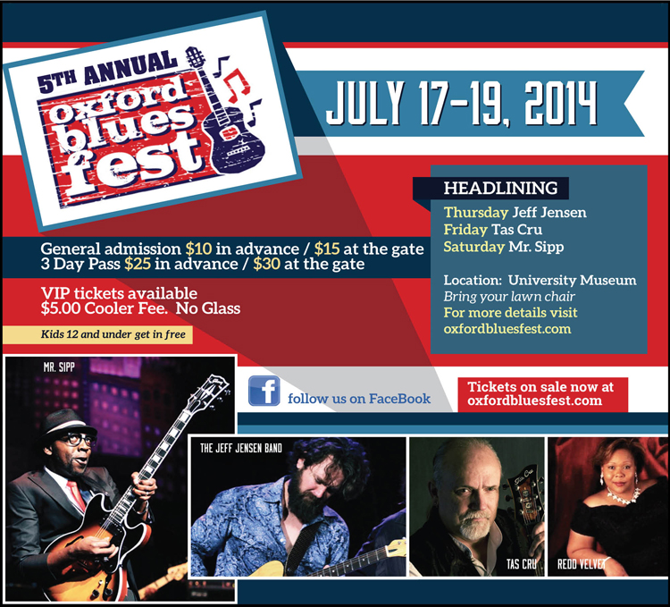 More than anything, the Oxford Blues Festival is a happening for the entire community to enjoy. Festival organizer Darryl Parker says, “There’s going to be something for everybody.” The ticket prices are reasonable, and the event is conveniently located in town. Nightly music ends around 10 pm, allowing festivalgoers to head to the Square for a show or a few drinks afterwards. So make your plans to spend the weekend of the 17th listening to the Blues in the shade with a BBQ sandwich in your hand—you can’t get much more “Mississippi” than that!