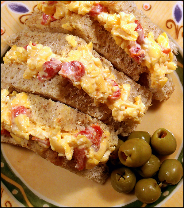It’s this pimento and cheese issue I’m all over like a duck on a June bug, but before going any further, let’s turn to this matter of spelling, since I’m acutely aware that any article in Mississippi is going to be scratched over and henpecked by a contentious flock of literati. Yes, I am quite aware that the it’s the pimiento pepper, but in his article “Creating a New Southern Icon: The Curious History of Pimento Cheese,” Moss notes that “In the late 1890s, imported Spanish sweet peppers started being canned and sold by large food manufacturers, which not only boosted their popularity but also introduced the Spanish name pimiento. Soon the ‘i’ was dropped from common usage, and by the turn of the century most print accounts of the peppers call them ‘pimentos’.” I’ll remind you that Moss has a PhD. (in English, no less) from Furman, and though I’m not known for my slavish allegiance to academics, like the rest of you I always heartily concur with eggheads when they’re in my corner. It looks so good on paper.