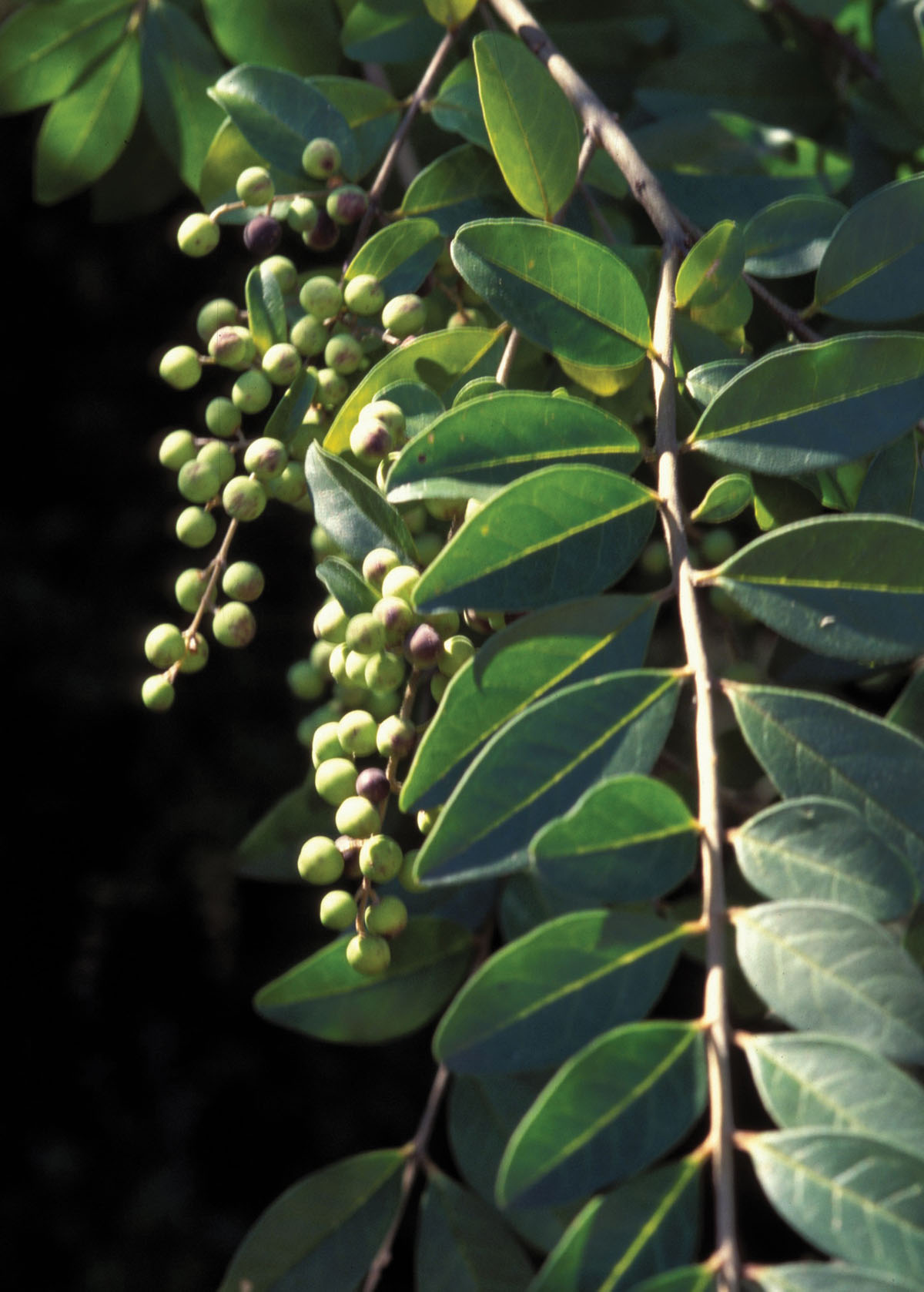 Native to China, privet was introduced in the United States as an ornamental shrub in 1852. It’s now found pretty much everywhere in the South. It forms dense thickets along roadsides, fence rows, fields, rights-of-way, and in forested creek bottoms. A member of the olive family, privet abundantly produces seeds and regenerates by root sprouts, quickly forming dense stands. Because of this, privet crowds out native plants and trees. Privet typically produces small white flowers in early summer and large clusters of seeds in the fall. Seeds are consumed primarily by birds and disseminated.