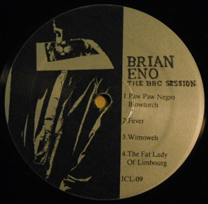 Recently, I picked up a wonderful album at the store, one that I’ve been playing pretty constantly for the last couple of weeks. It’s an Italian bootleg by Brian Eno called The BBC Sessions. Brian Eno, if it’s the case that you’ve been living under the proverbial rock and don’t already know who he is, was the heavy sound scientist in the earliest version of Roxy Music who later went on to record and release some of the most gleefully perfect records of the 1970s. His solo records are rife with all sorts of exuberant sonic thrills, wild and giddy affairs plump with glittery bliss. In the 1980s, he dropped his sonic soul science on groups like U2 and Talking Heads, in the process moving them all in great leaps to higher peaks. The guy’s genius is consistent and, moreover, fun.