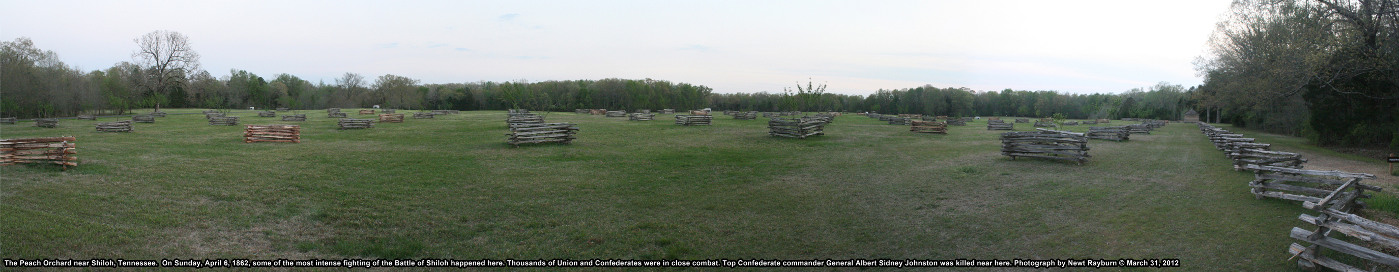 Confederates suffered nearly 8,500 casualties that day, including General Albert Sidney Johnston, who was mortally wounded near “The Peach Orchard.”