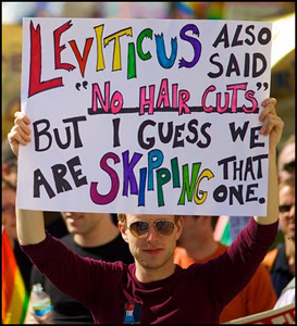 And, I’m afraid that for conservatives, we’re back to choosing between the lesser of two evils as the question always seems to be which ridiculous rules do we keep and which do we throw away. Is it homosexuality we should rise up to oppose or is it women speaking in the church…or both…or neither? I think the truth lies again in understanding historical context and the fallibility of man rather than the “eternal and unchanging word of God.”