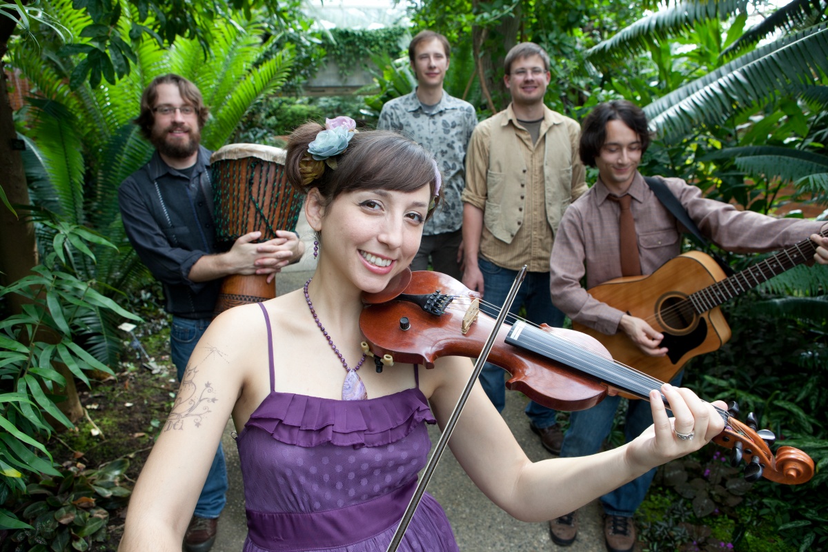 “It’s folk-rock music at the heart of it,” says Zindle, who started the band with her husband, percussionist Randall Moore, “but I’m influenced and moved by sounds from all over the world.” This interest in world music came first from her own roots. With two Irish grandmothers, the young violinist struck ancestral gold when she discovered Celtic fiddling as a teenager. At this same time the music of artists like Paul Simon, Rusted Root, and Peter Gabriel stirred up a deeper longing, bringing distant ethnic sounds into her small suburban Buffalo, New York bedroom. She began seeking out the source of these sounds and her love for travel and world music became a life-long passion.