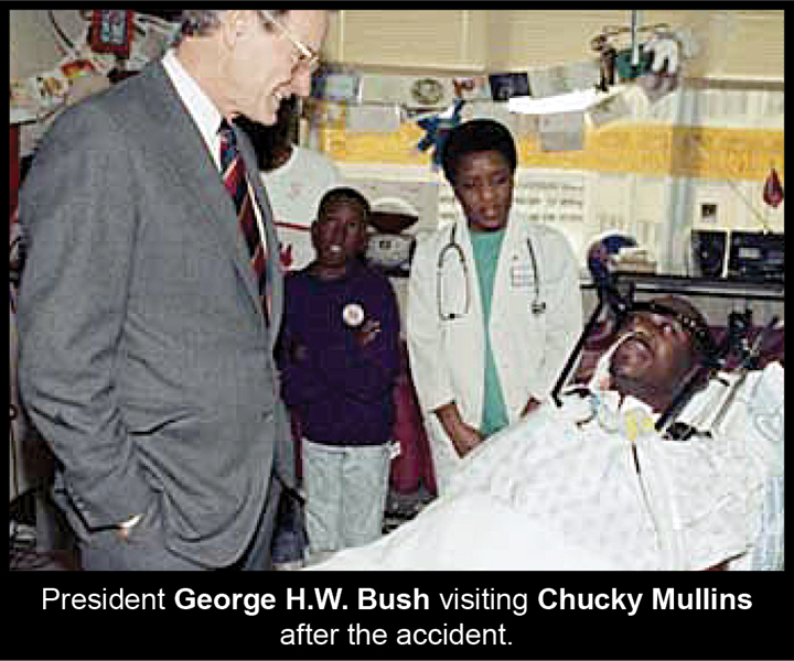 After being transported to Baptist Memorial Hospital in Oxford and then airlifted to Memphis, it was determined and then revealed that Mullins had shattered four vertebrae in his spine and was paralyzed from the moment the hit took place.