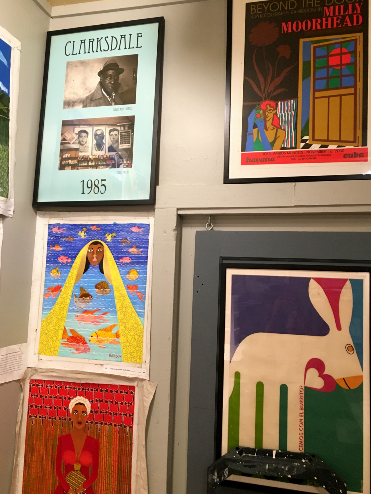 “This first group below are rare one of a kind posters which commemorated on going promotions and history of Cuba. Double Session posters, for example were created when the school day was divided (morning and afternoon sessions) so that the older students could help for one season with the sugar cane harvest. Baseball is part of Cuban culture, too. Again, art is there for a purpose, but it’s not easily reproduced. Everyone of these was individually created with screen printing. I have seen the “studios” which are usually a nook in a house, or the dining room.