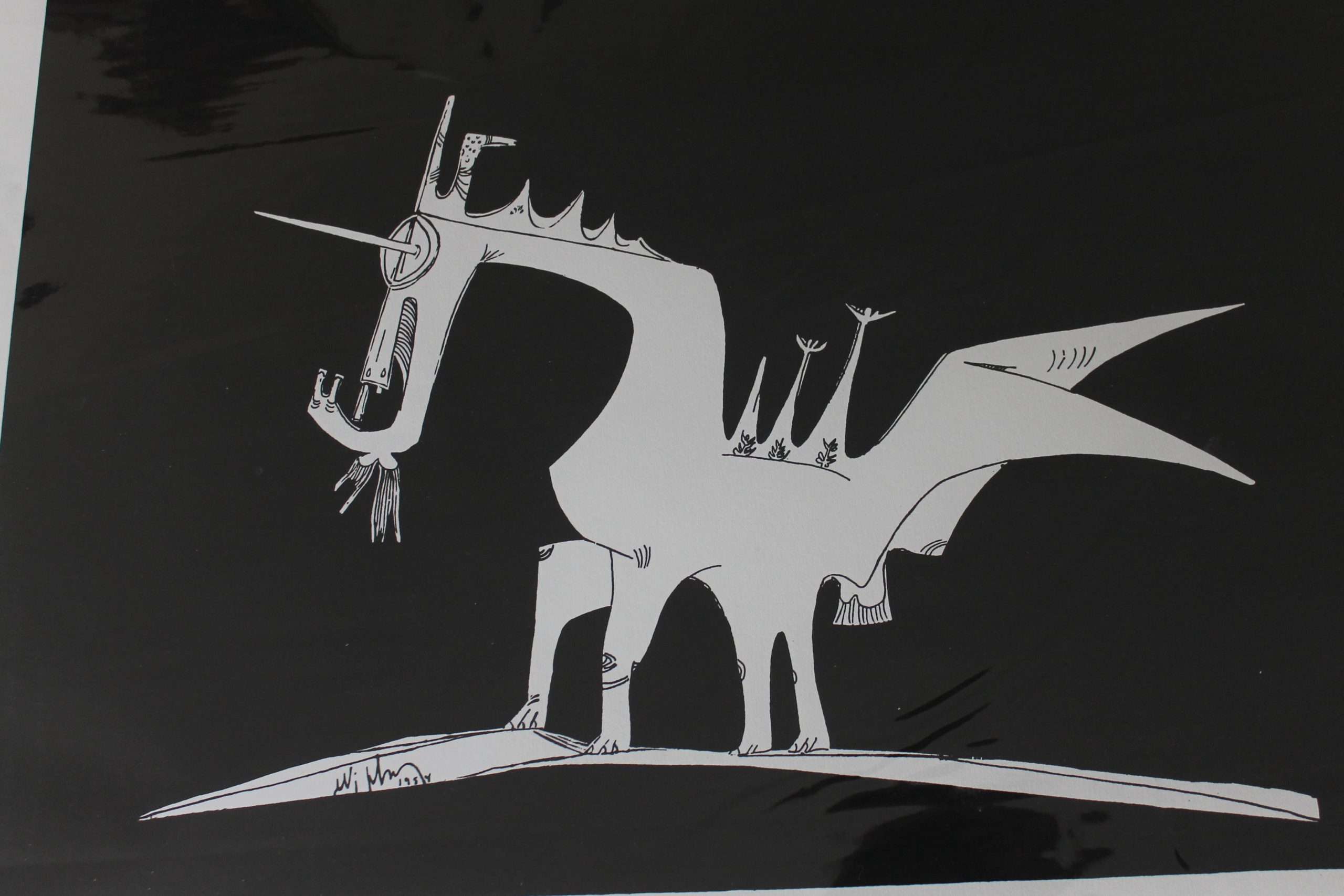 Everything in the collection of art is either created or purchased by West, or in a few cases, on consignment.