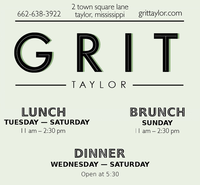 2 Town Square Lane, Taylor, Mississippi – 662.238.3922 – www.GritTaylor.com