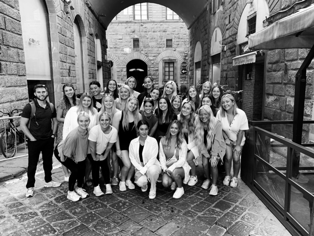 Several of the Ole Miss students who participated in the School of Journalism and New Media's study abroad trip to Italy gather for a group photo in Florence. Photo by Mark Dolan