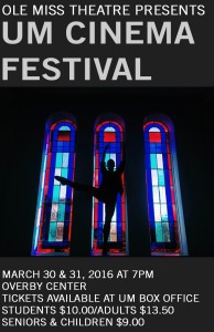 The UM Cinema festival will be held in the Overby Center for Southern journalism and Politics on the Ole Miss Campus March 30 and 31 at 7pm .