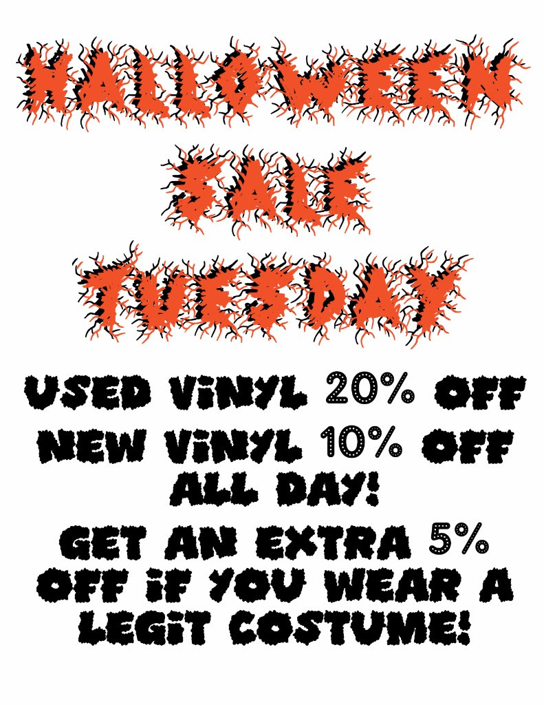 The End of All Music has a Halloween sale going on right now! Get 20% off used Vinyl LPs and 10% off new Vinyl LPs. If you come in with you costume on they’ll knock another 5% off as well!