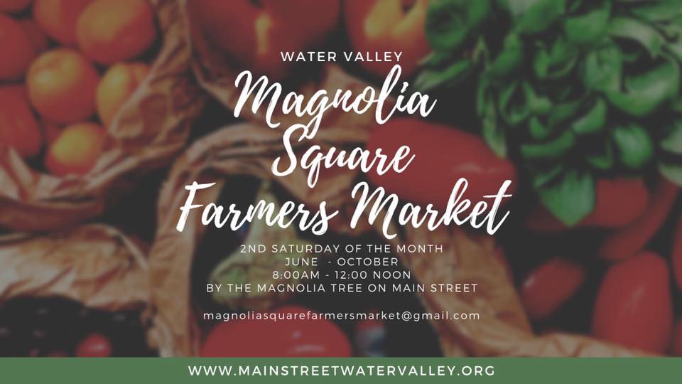 Water Valley Main Street Association was formed in 2007 with the purpose of promoting Water Valley District as the focus of a community where history is preserved, businesses thrive, and citizens and visitors dine, shop, live, and enjoy the arts and entertainment. The Magnolia Square Farmers Market is a result of this vision.
