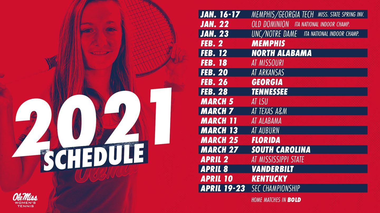 Ole Miss Women’s Tennis 2021 Schedule (Home Matches in Bold)
