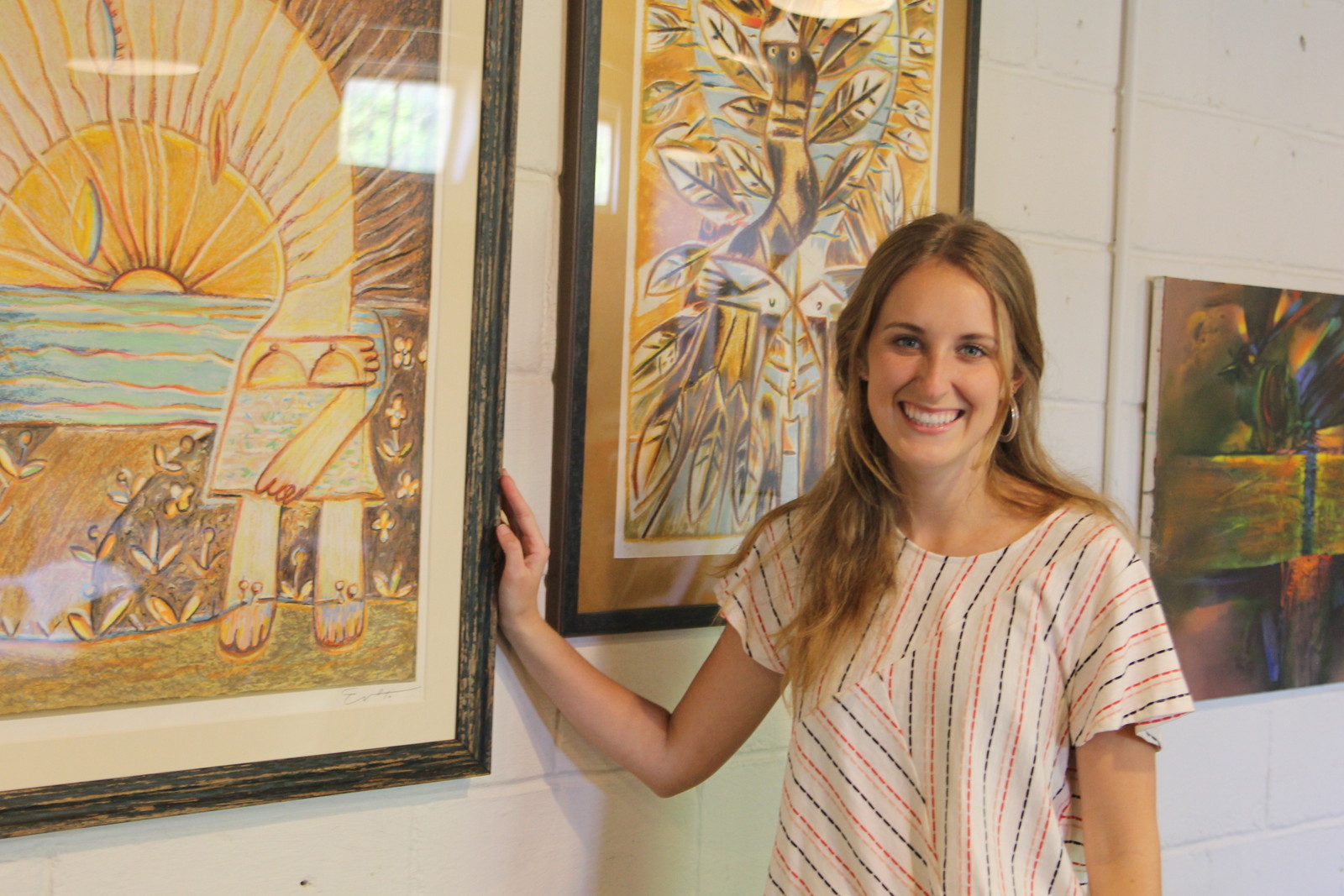 Shelby Bickes, showing off a painting by Ever Fonseca, one of Cuba’s most well known painters.